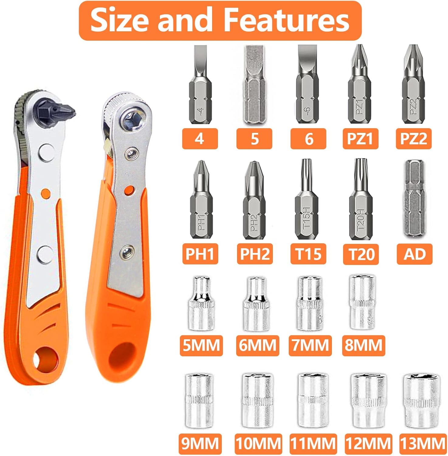 • 1 × Tournevis à cliquet (36 dents)